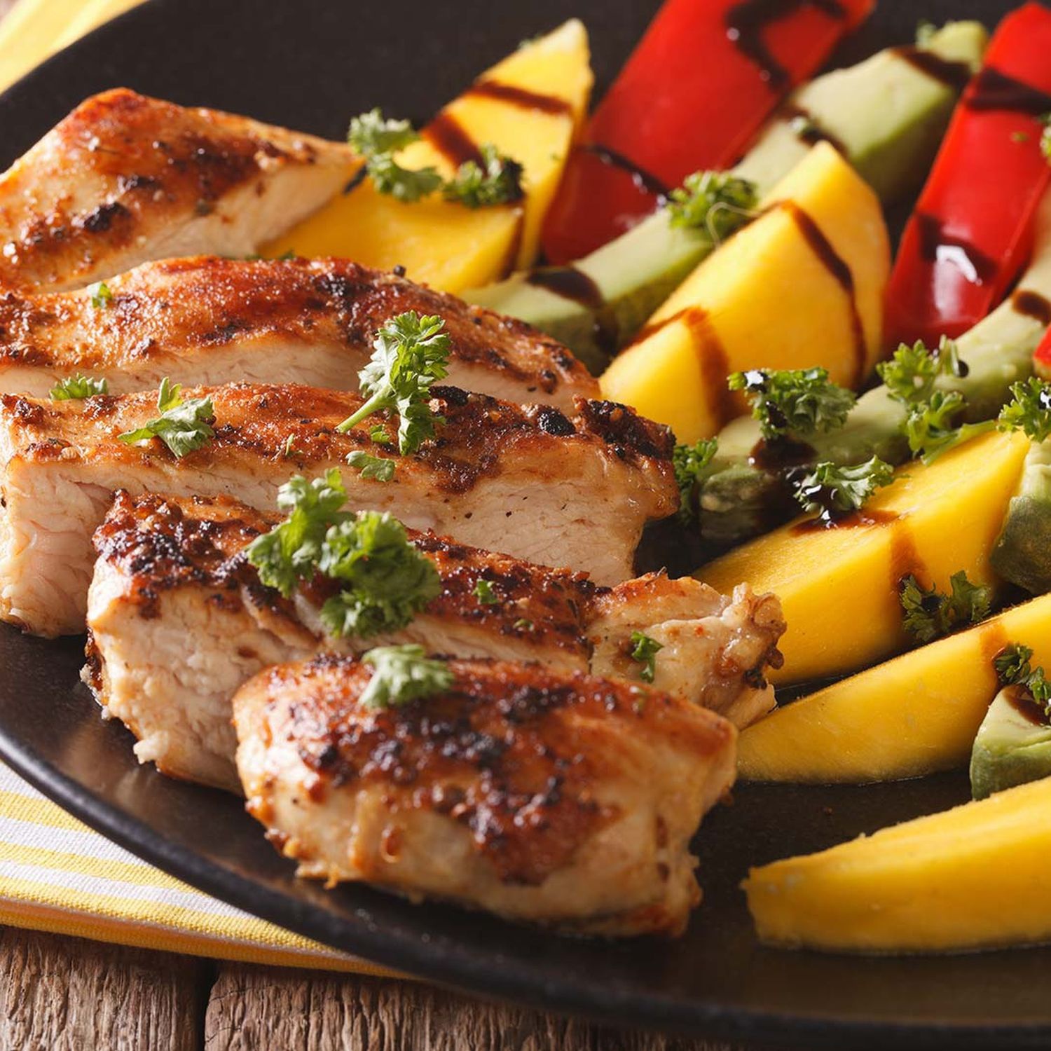 Premium Hahnchen Grillplatte Mit Mango Avocado Salat Hofer Rezeptwelt