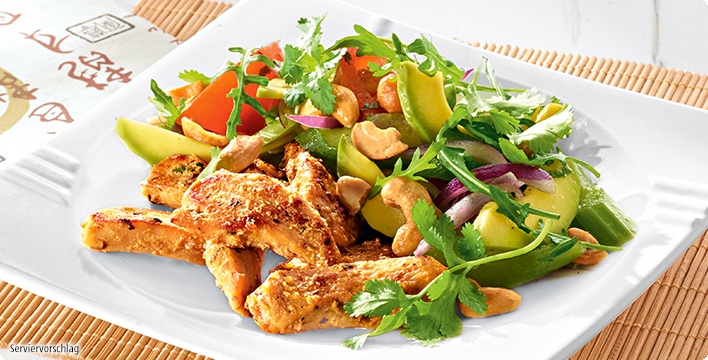 Asiatisches Hahnchen Geschnetzeltes Mit Fitness Avocado Salat Aldi Rezeptwelt